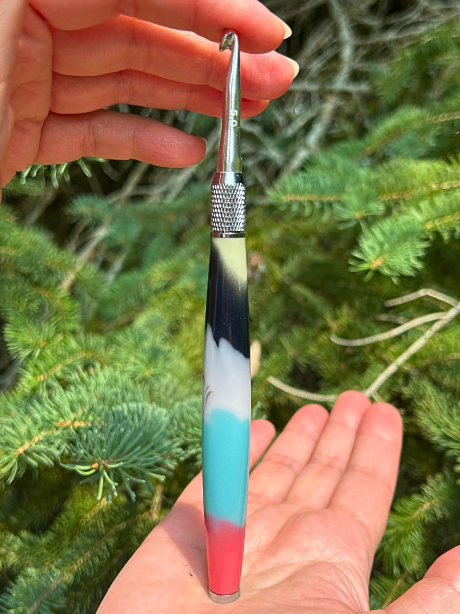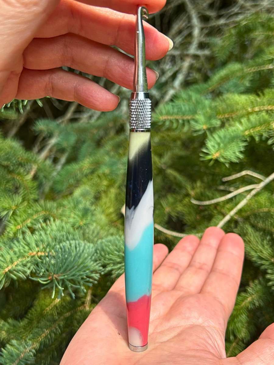 A lovely hand turned handle made from  “Terra Bloom” resin.